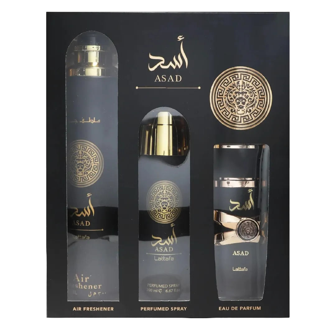Lattafa Asad är en varm, kraftfull och sensuell doft med tydliga inslag av vanilj, ambra och kryddor. En mörk, intensiv och maskulin parfym som ger ett självsäkert intryck och sitter länge på huden.